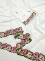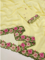 This pastel range multi work saree is a soft and stylish choice for special occasions. Made with light pastel shades, it features a mix of beautiful work such as embroidery, sequins, thread, or mirror details. The fabric is lightweight and easy to drape, giving a graceful and elegant look